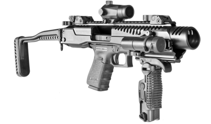 The KPOS G2 P.D.W. Conversion-Kit turns a standard handgun into a rock solid personal defense & special